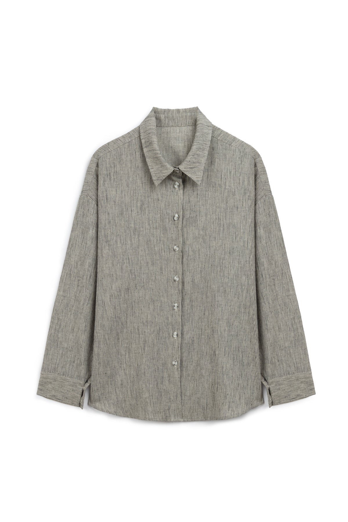 Striped Relaxed Shirt & Pants Set – Gray