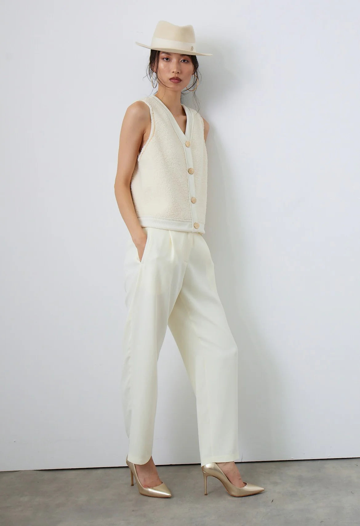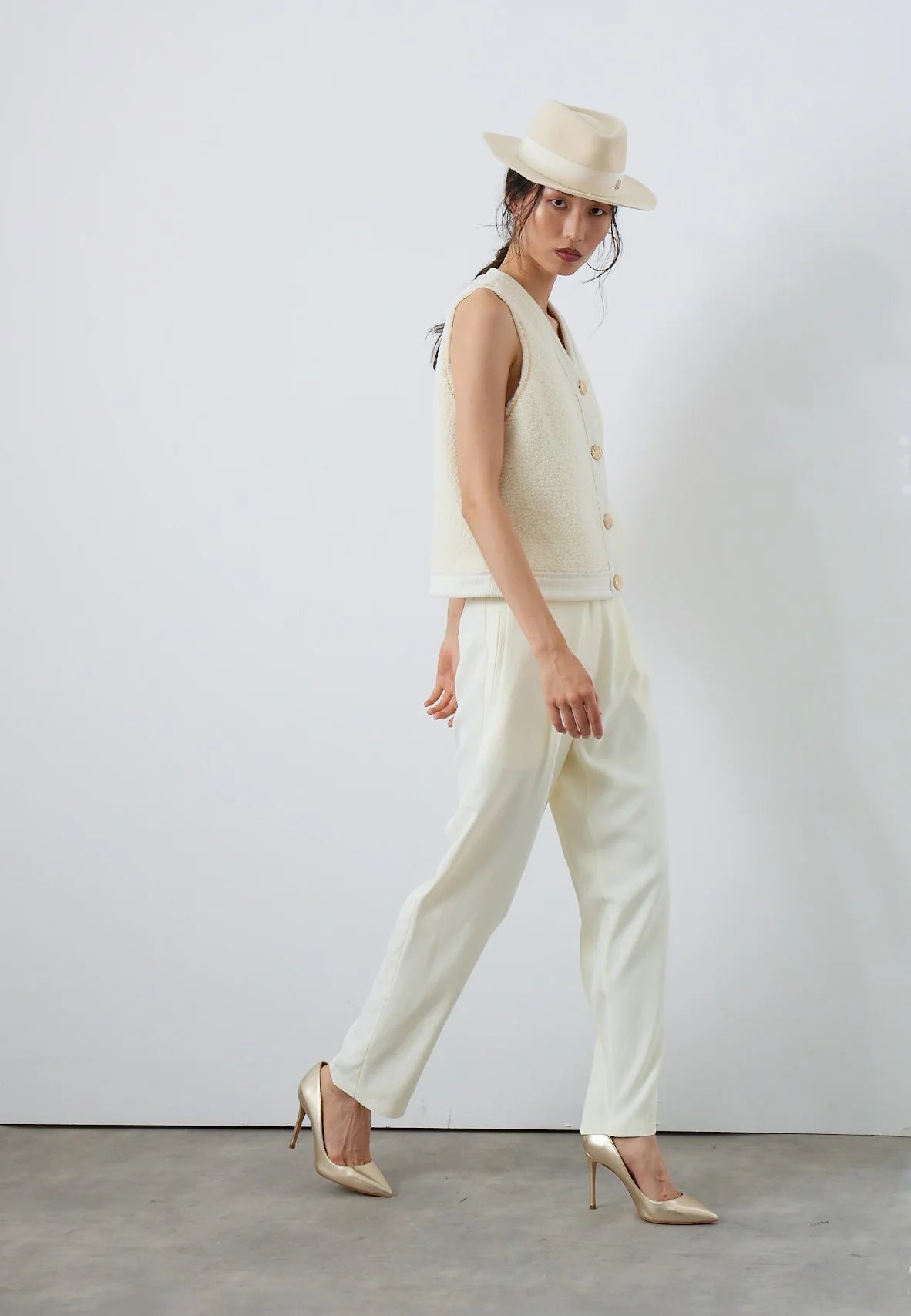 A refined balance of elegance and ease, these trousers feature a clean front waistband paired with an elasticated back for day-long comfort. The straight-leg silhouette offers timeless versatility, while practical side pockets add subtle functionality. Perfect for both office-ready looks and everyday styling, they deliver understated sophistication in every detail.
