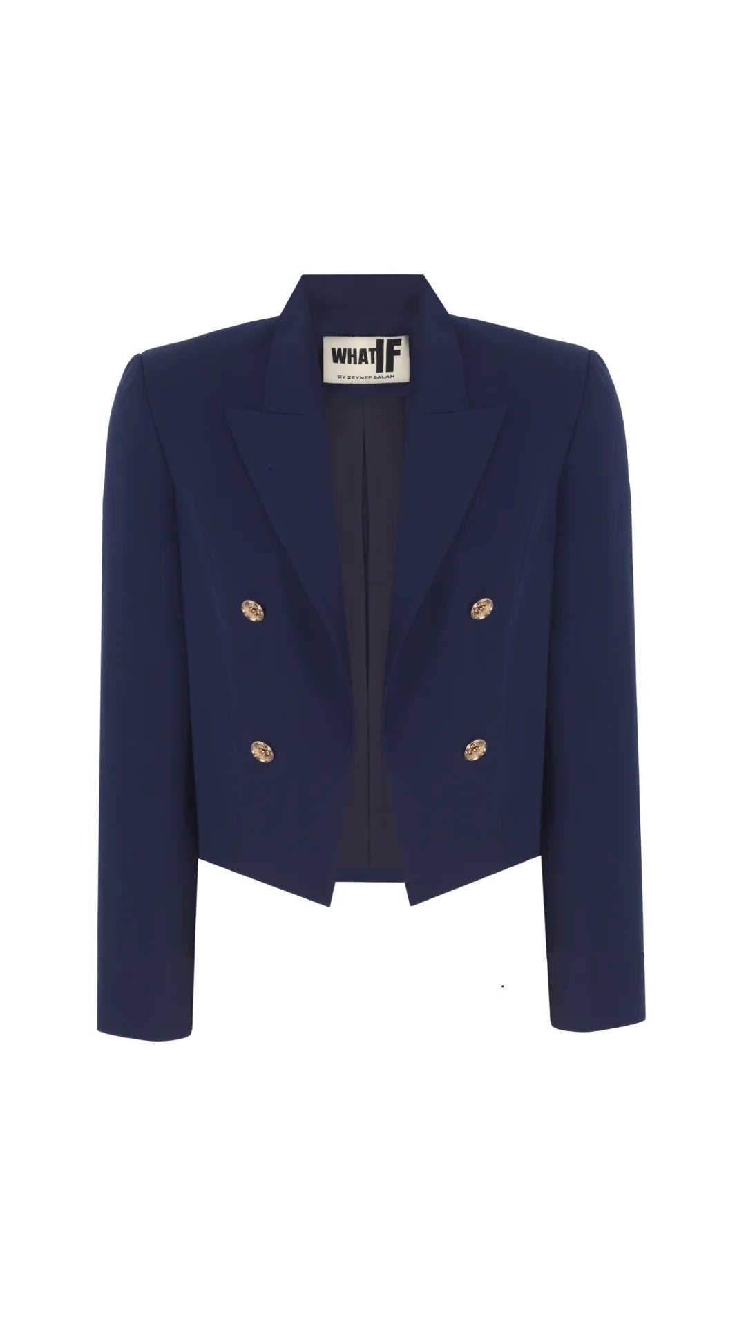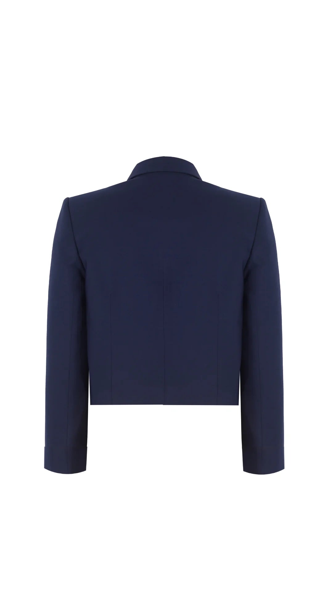 The Marino blazer offers a modern reinterpretation of classic marine style. Tailored in a deep navy tone, it features sharp lapels, metallic buttons, and a cropped cut that defines a strong silhouette. Balancing sophistication with versatility, it transitions effortlessly from daytime elegance to refined evening wear.