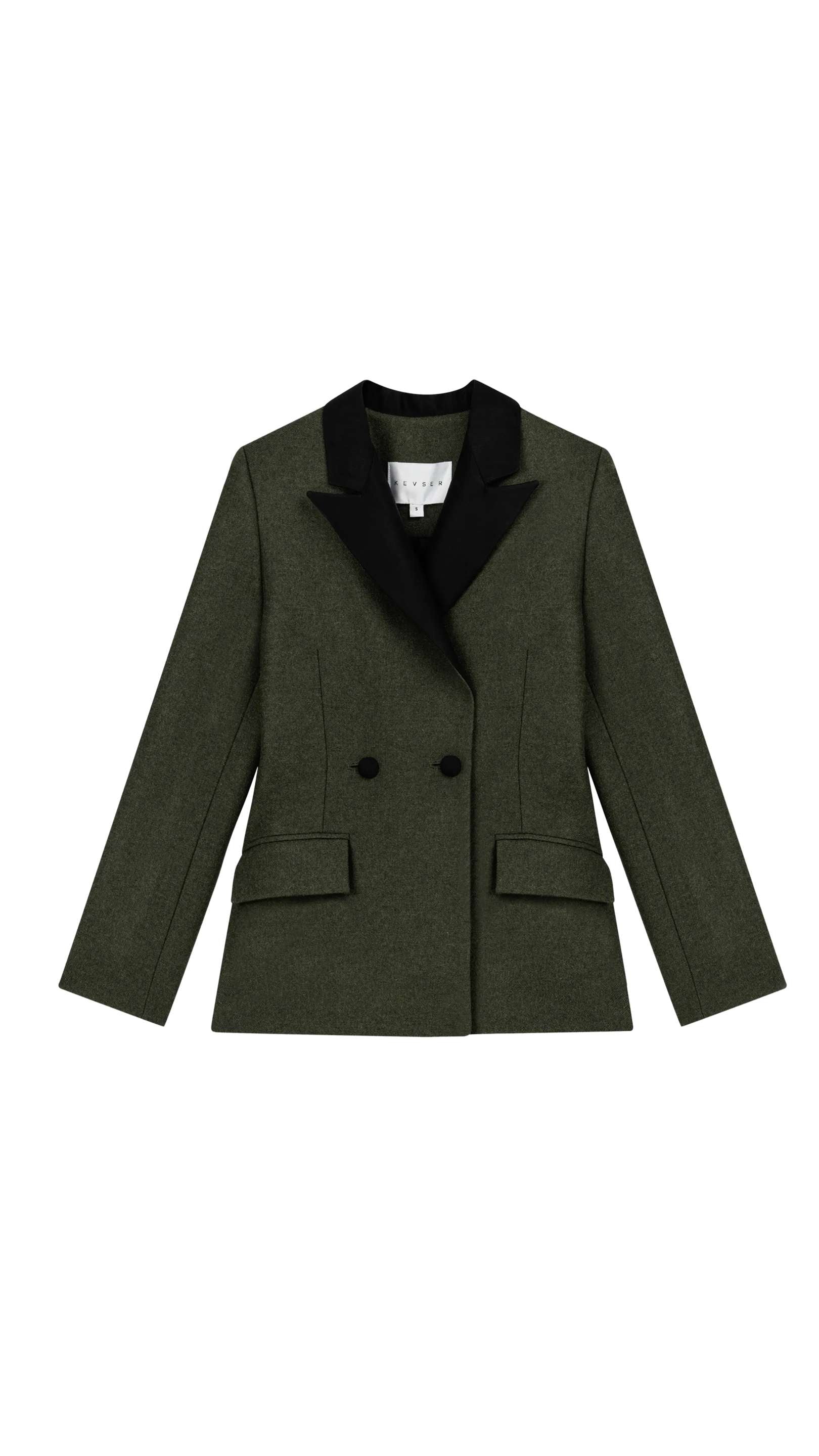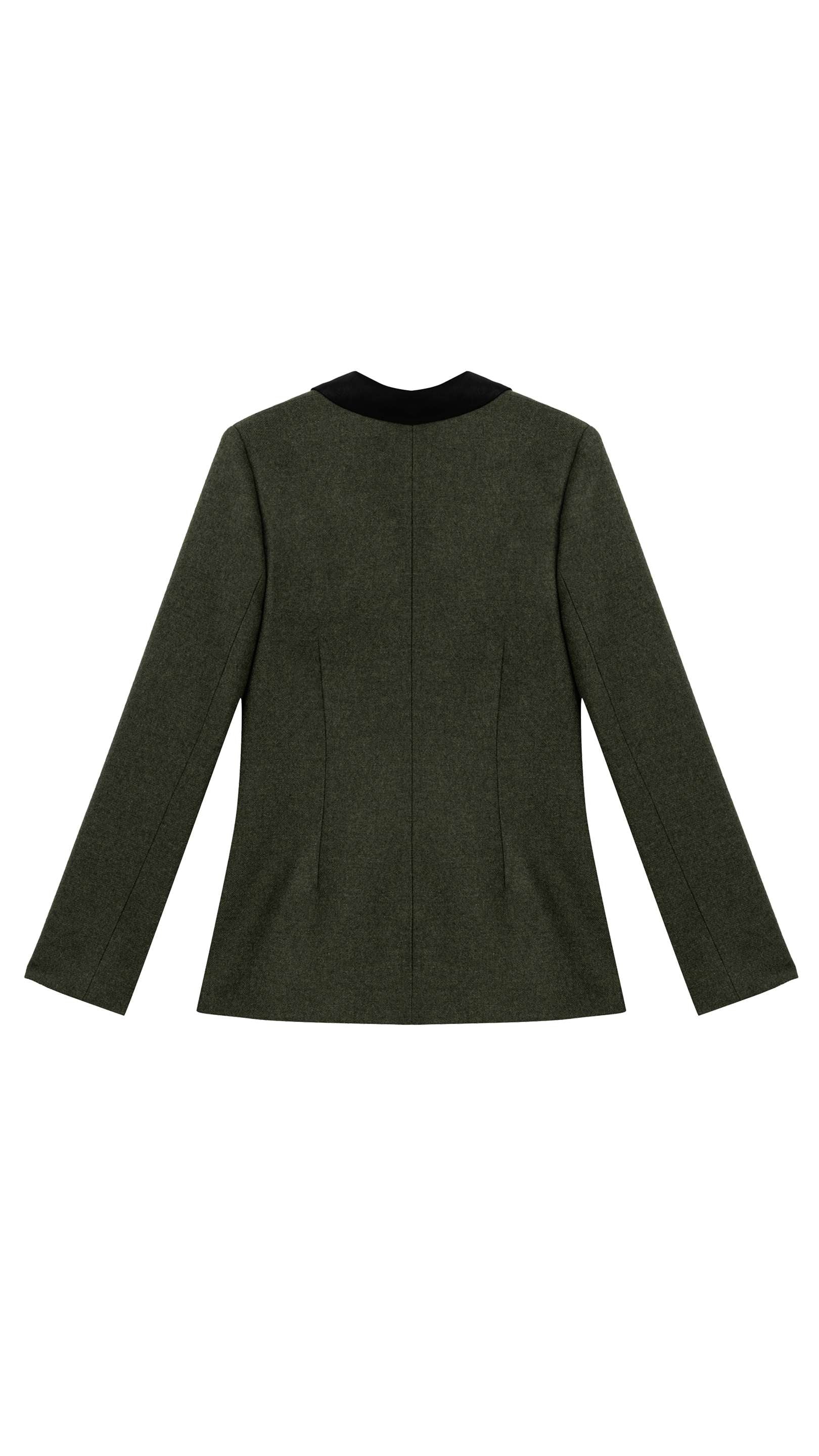 This elegant cashmere blazer offers a sleek, tailored fit with a chic waist-cinching design, ideal for both formal and casual styling. The structured silhouette features a classic double-button closure and distinctive collar details, while the soft cashmere lining ensures comfort throughout the day.