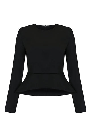 Black Crepe Blouse with Front Slit and Peplum Detail
