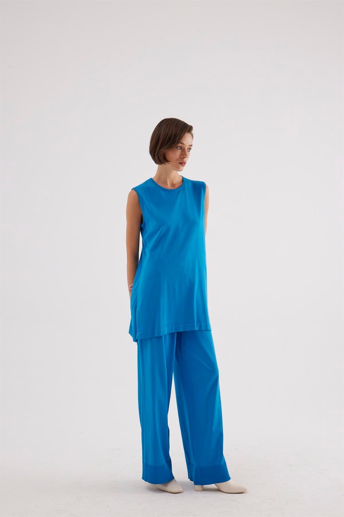 A study in understated comfort and elegance. The Faro trousers are crafted from a soft viscose-polyamide knit, offering a smooth drape and effortless flow. Their wide-leg silhouette and clean lines make them the perfect foundation for minimalist, trans-seasonal dressing — whether styled with relaxed knits or structured outerwear.