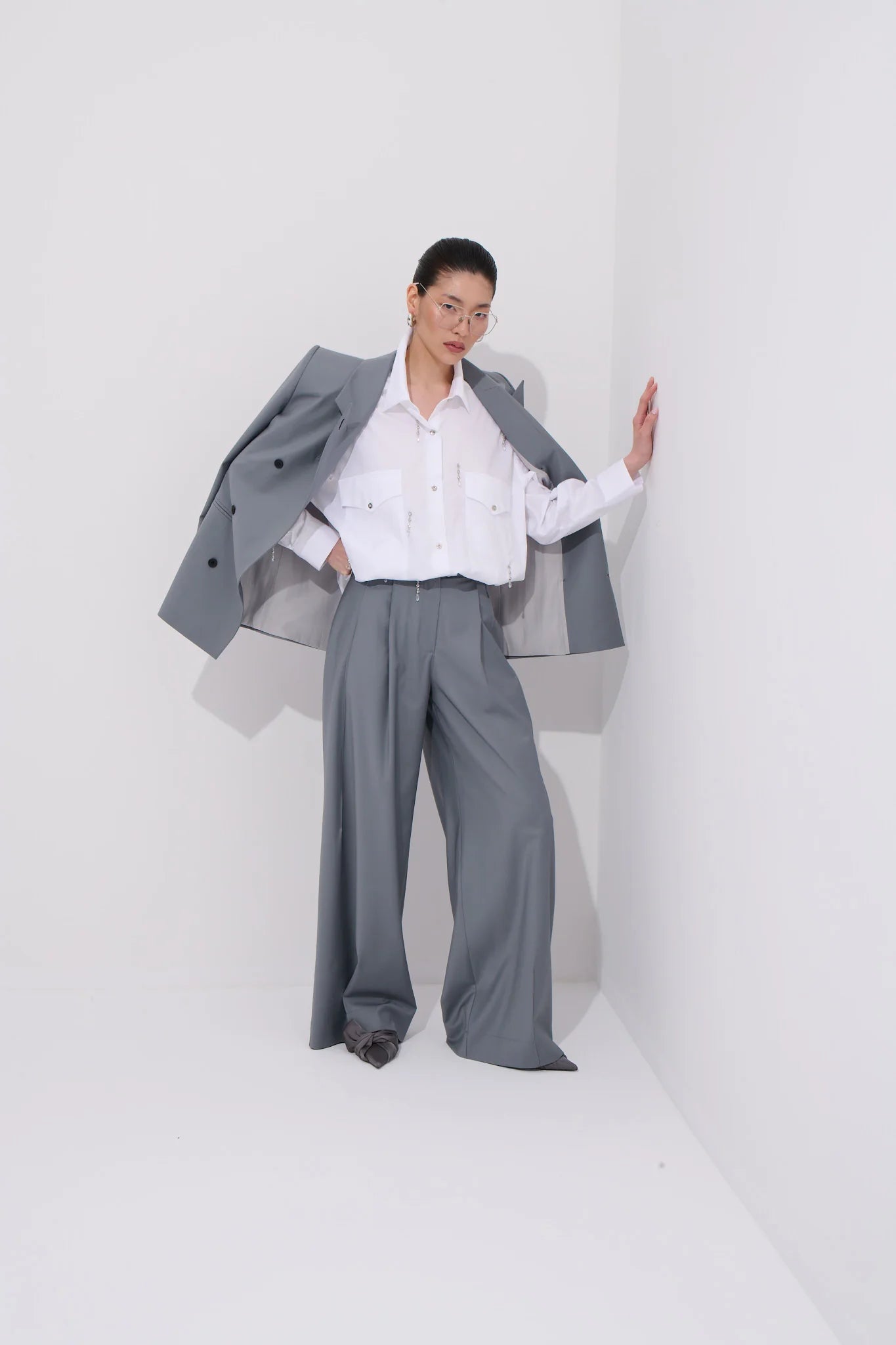 Rendered in a sophisticated shade of grey, this blazer seamlessly transitions from day to night — making it a staple for the modern, versatile wardrobe.