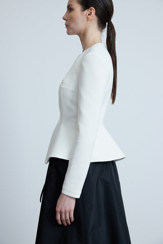 White Crepe Blouse with Front Slit and Peplum Detail