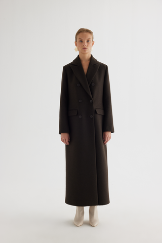 Double-Breasted Maxi Coat – Dark Chocolate