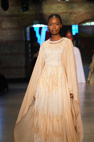 Silk Goldwave Balcanian Pearl-Embellished Silk Gown – Gold Beige