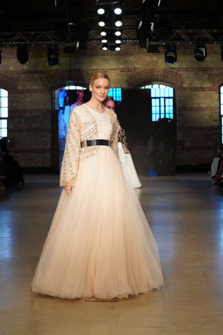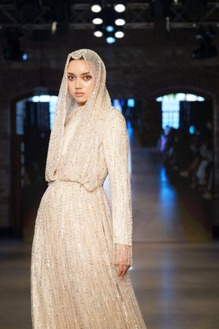 Diamond Whisper Balcanian Pearl-Embroidered Tulle Gown – Champagne