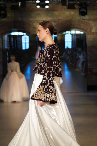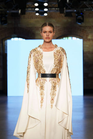 Empire Soul Balcanian Crystal-Embroidered Satin Gown – White