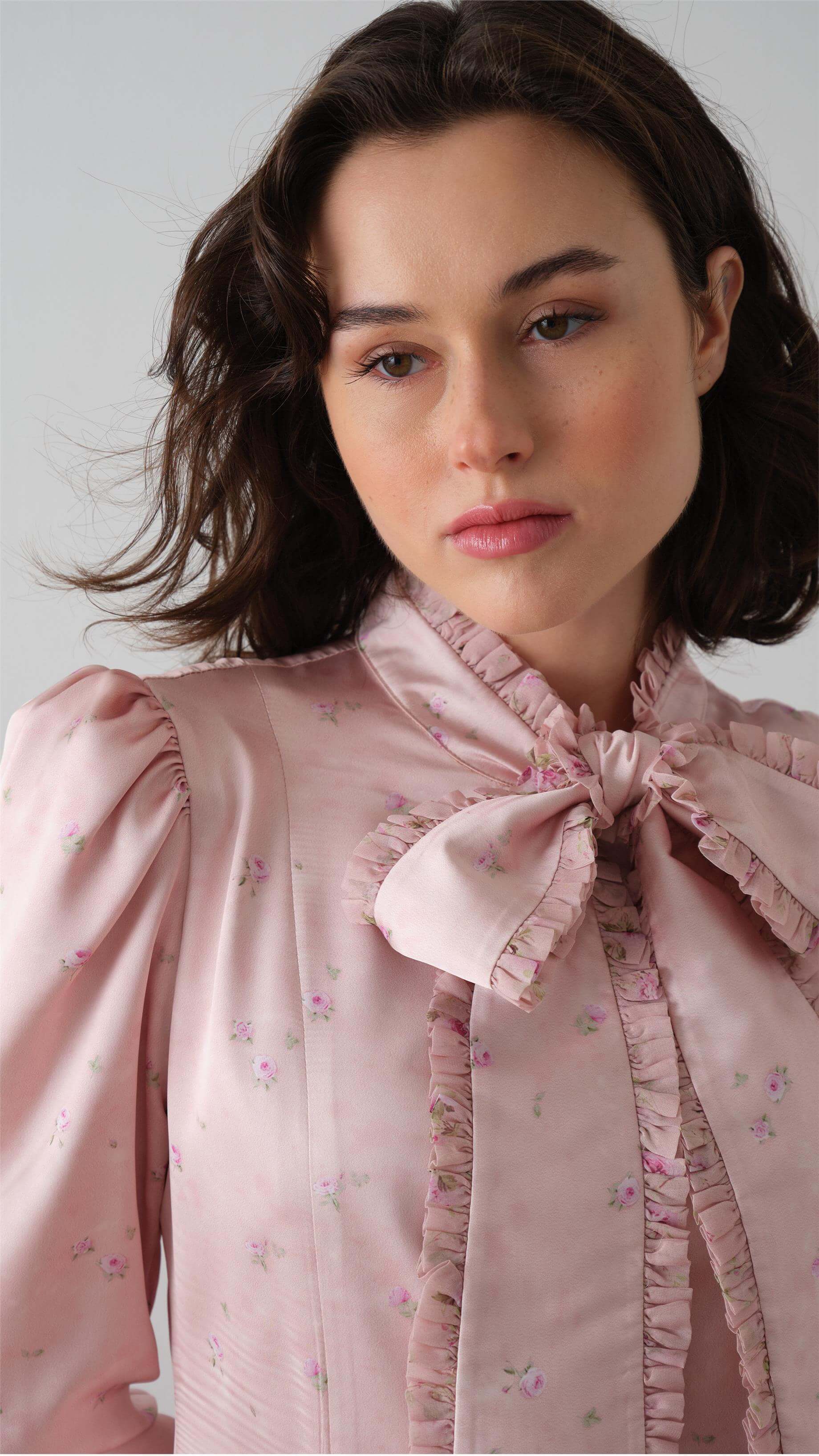 Romantic and timeless, this vintage-inspired maxi dress captures a graceful femininity with its delicate floral print and soft cream hue. The high neckline is adorned with a statement bow, while ruffled details along the cuffs and waist add a charming, period-drama elegance. Crafted in a lightweight flowy fabric, it offers both comfort and sophistication — perfect for garden gatherings, tea events, or special daytime occasions.