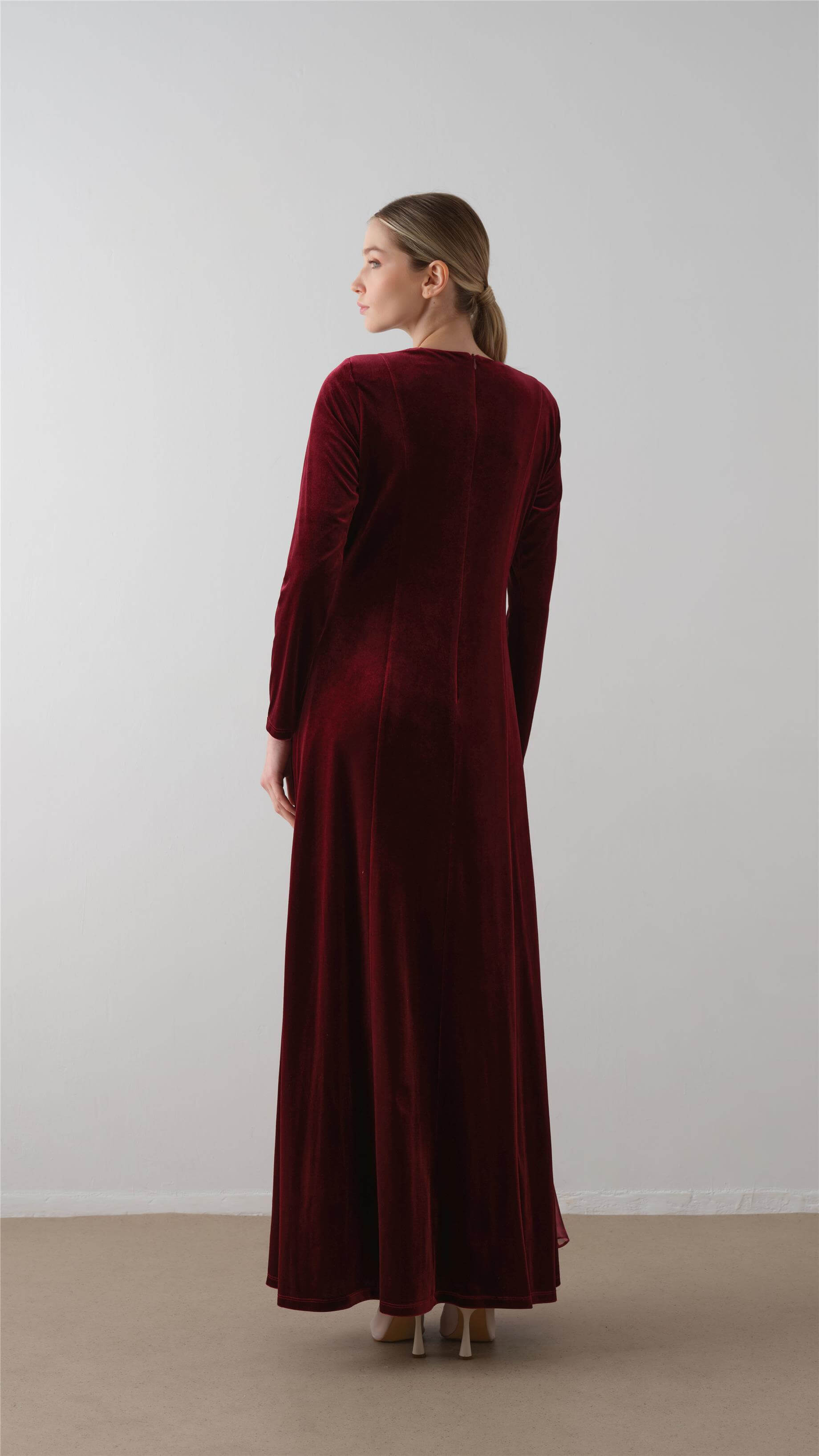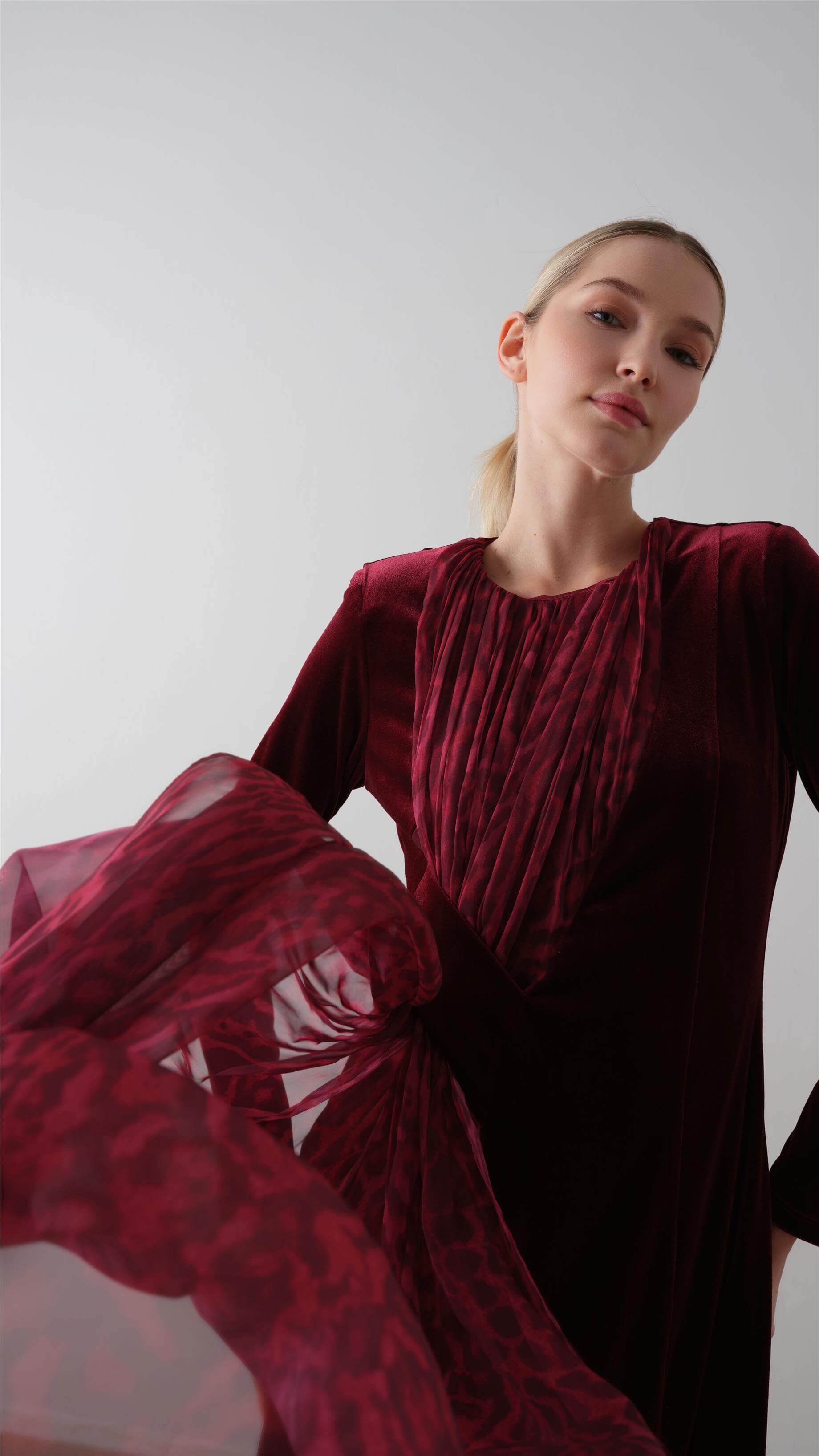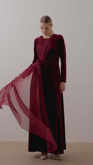 Cross-Draped Velvet Chiffon Dress – Bordeaux