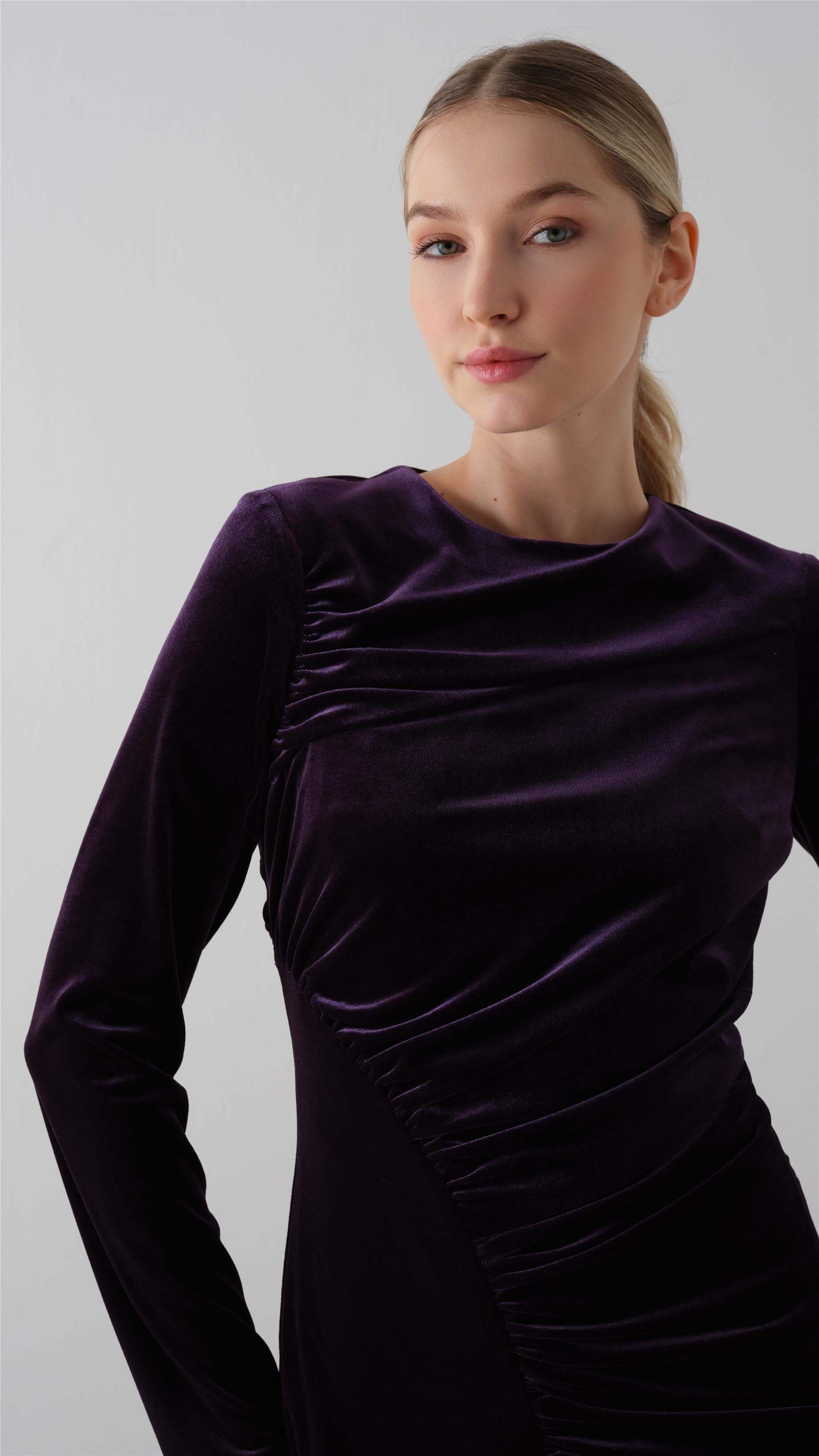 Ruched Velvet Maxi Dress – Plum
