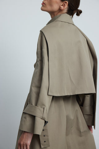 Double-Breasted Belted Cotton Trench Coat in Taupe