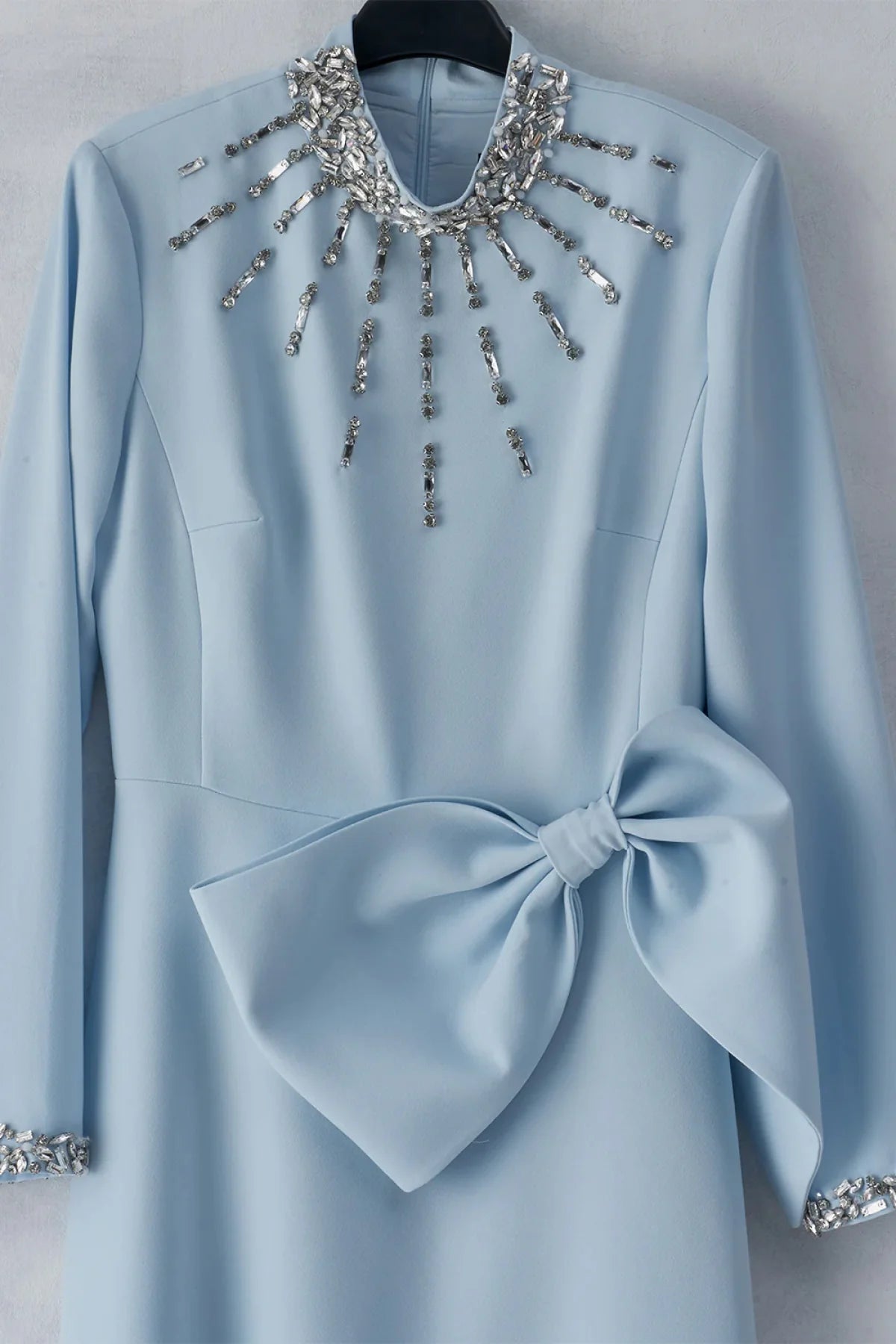 Embellished Bow Detail Evening Gown – Light Blue
