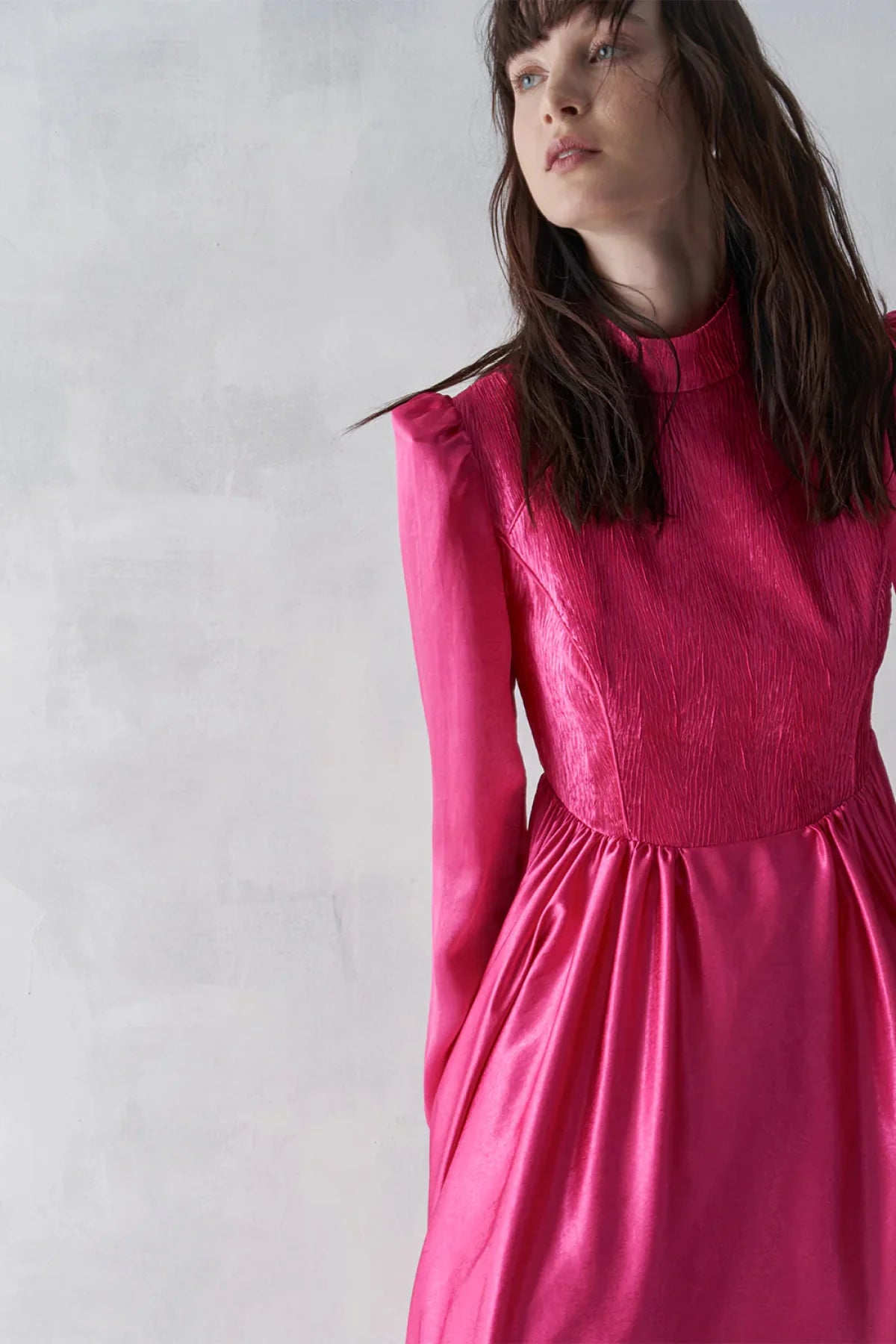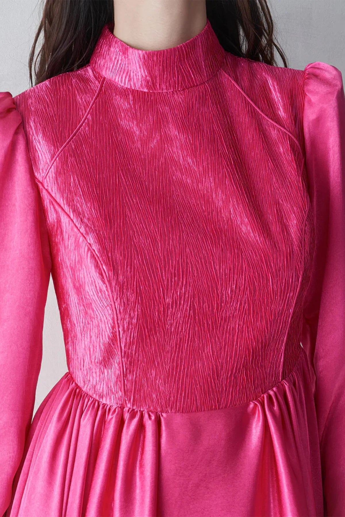 High Neck Textured Bodice Evening Gown – Fuchsia