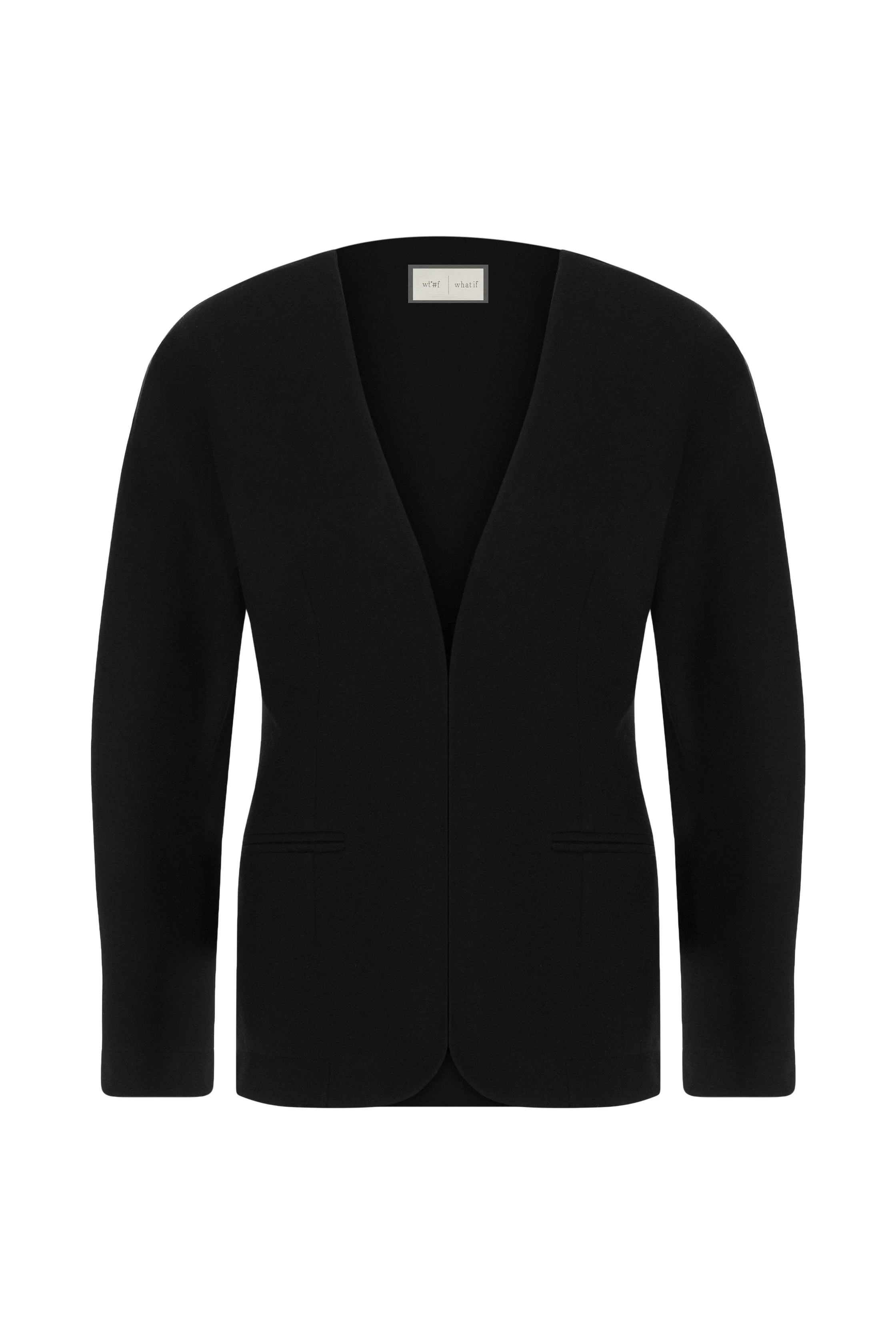 A modern interpretation of minimalist tailoring. The Studio blazer features a fluid unlined construction and soft shoulder shape, creating an effortless yet sophisticated silhouette. Designed to gently follow the waist without restricting movement, it delivers a powerful, clean aesthetic — a perfect balance of edge and elegance. A timeless black essential for elevated city dressing.