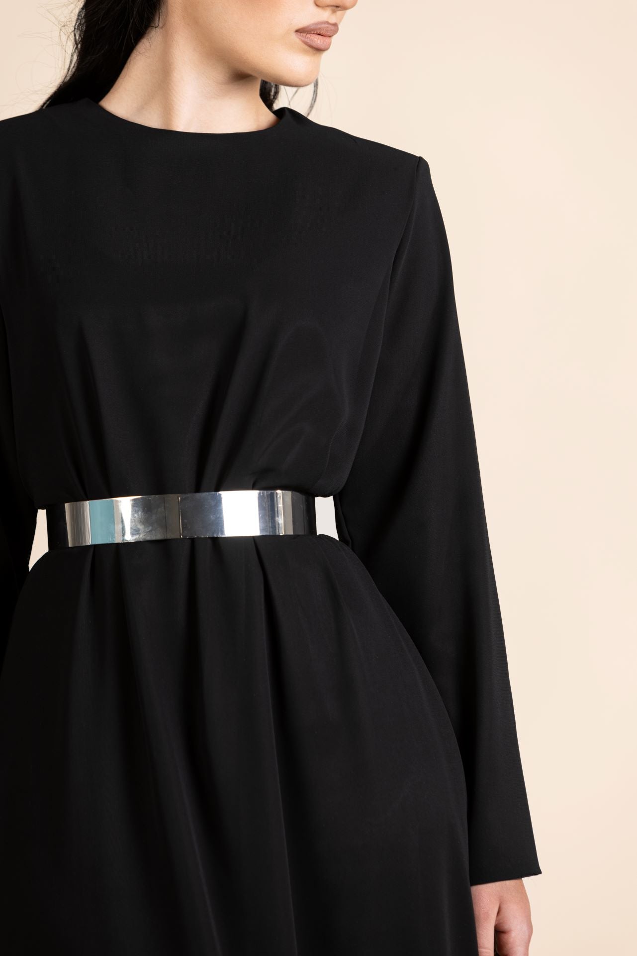 Mariam Satin Dress with Statement Belt – Black