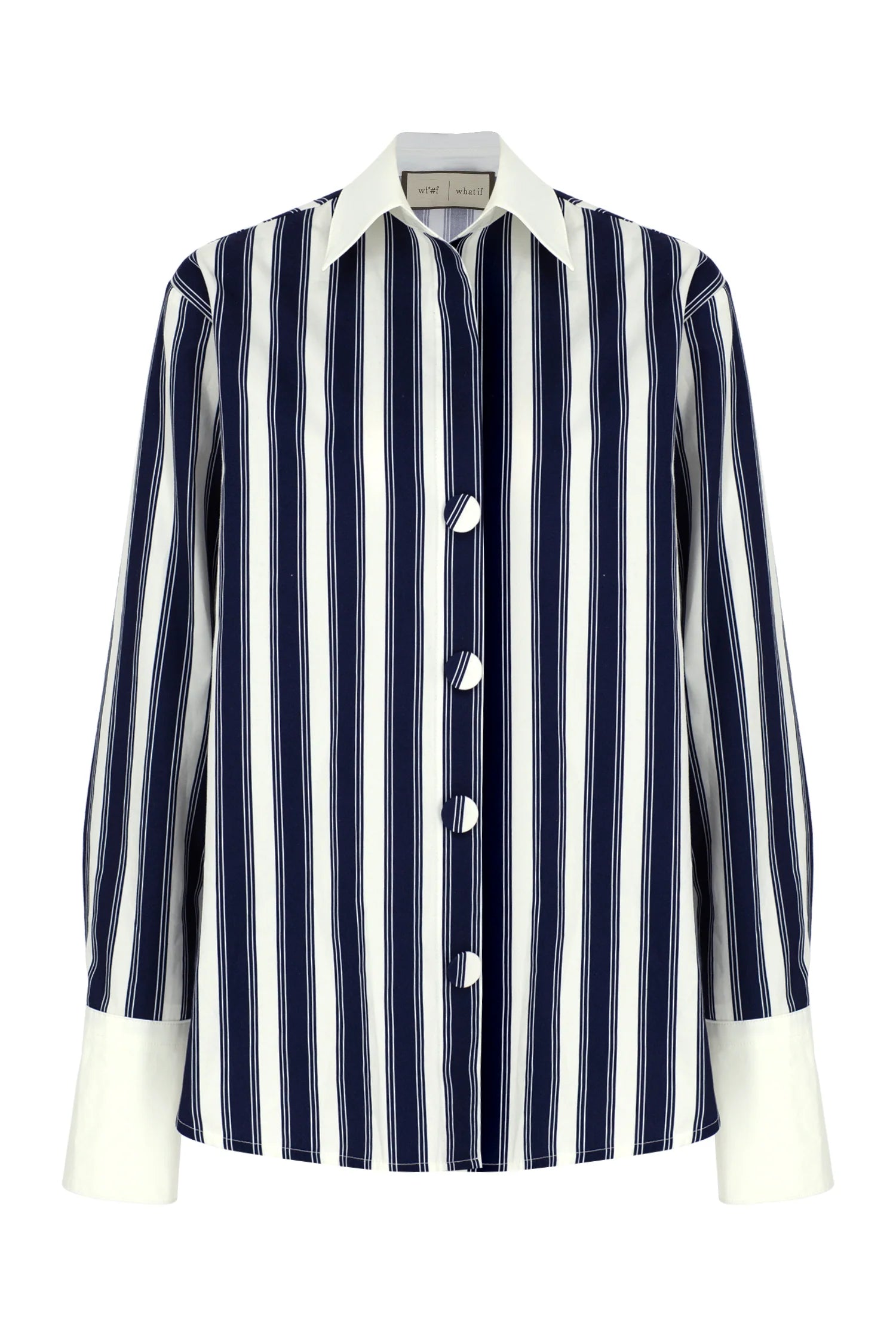 The Colette shirt by WhatIfBrand brings timeless elegance into a modern silhouette. Crafted from 100% cotton, it features bold vertical stripes contrasted with crisp white cuffs and collar. Covered buttons in matching fabric add a refined touch, while its relaxed fit ensures comfort and effortless styling. Designed as a versatile essential, it seamlessly complements both casual and elevated looks.