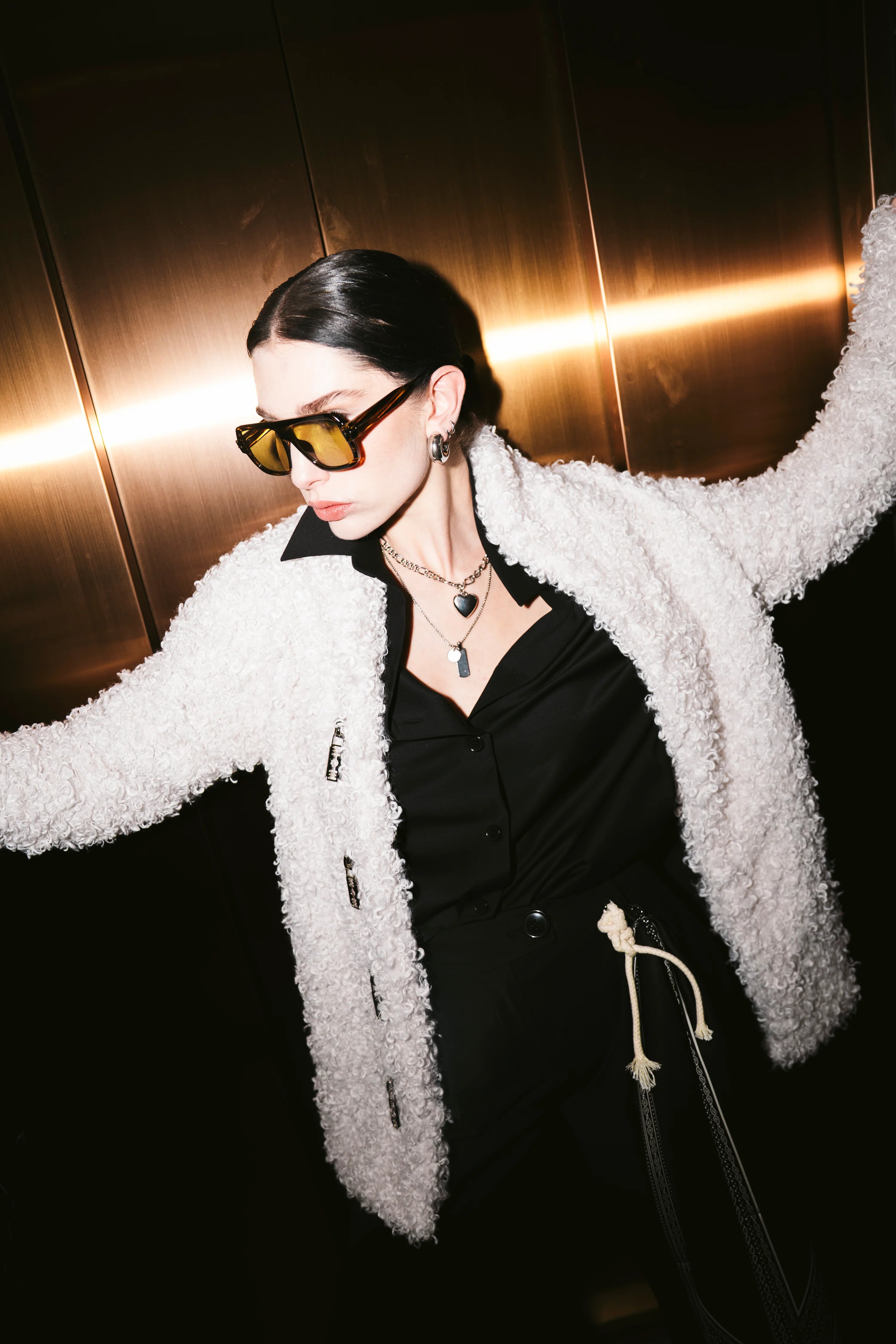 This relaxed-fit wool-blend shirt drapes effortlessly, creating a fluid silhouette with a clean minimalist edge. The structured collar and elongated cuffs add a polished finish, making it a versatile piece for elevated everyday styling — from office looks to evening layering.