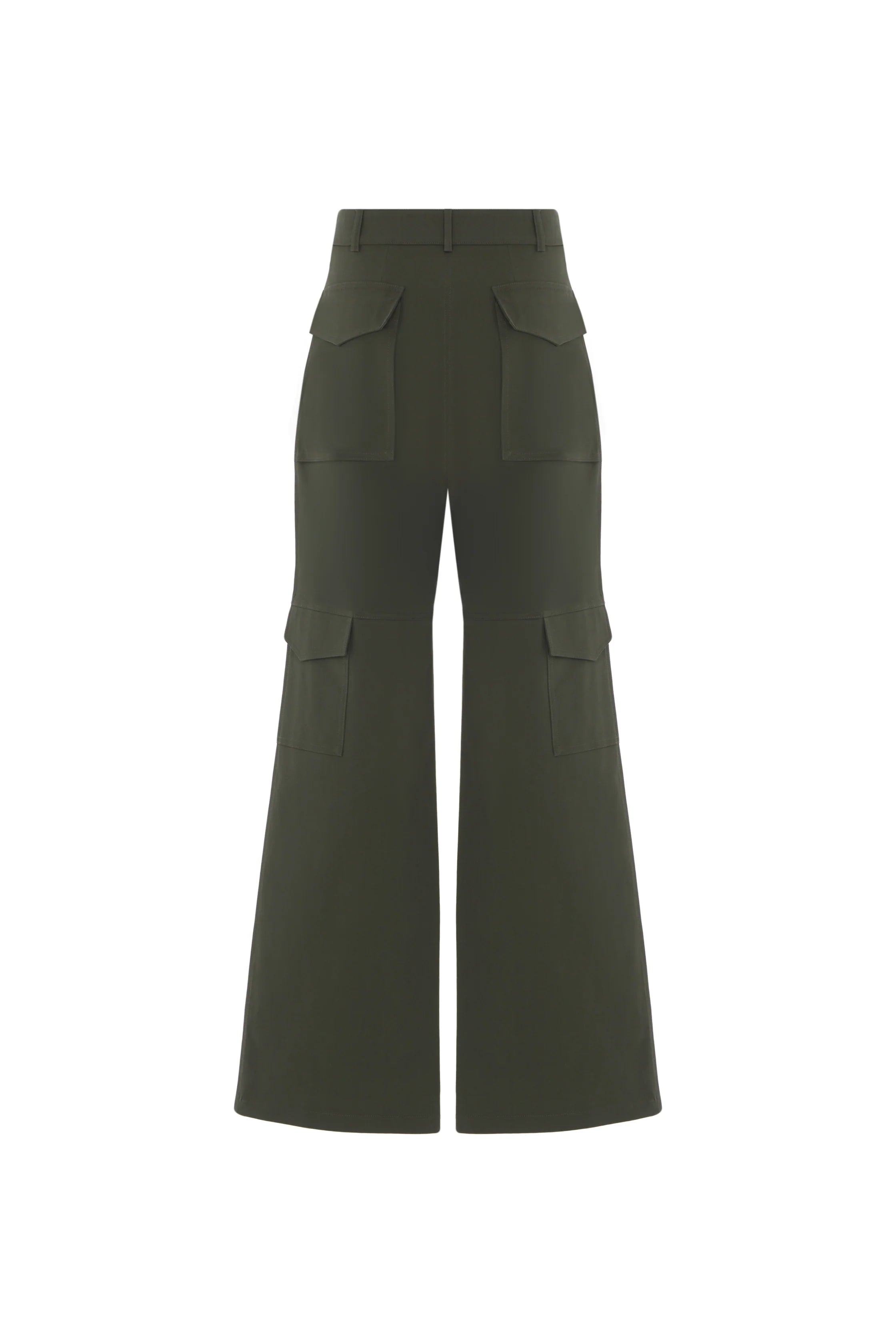 Olive Cargo Wide-Leg Trousers – Khaki