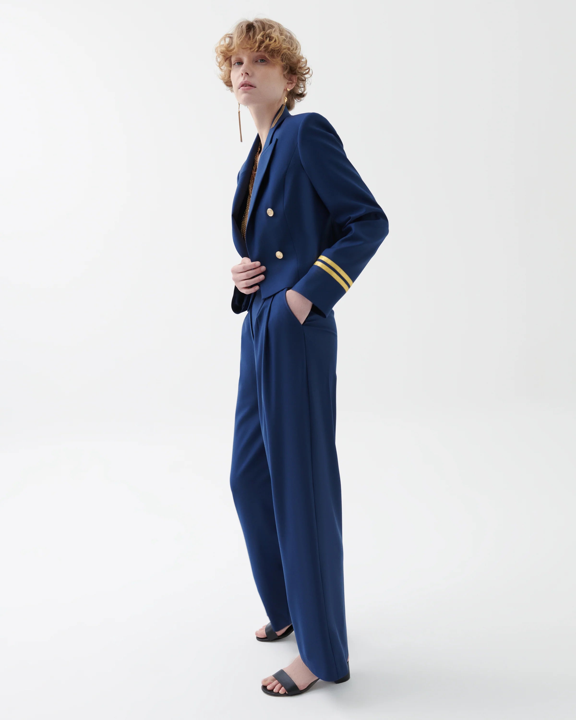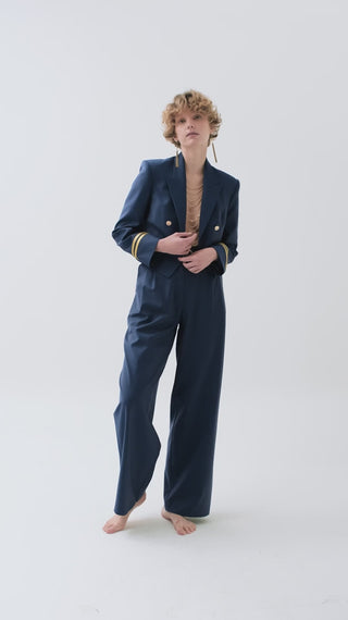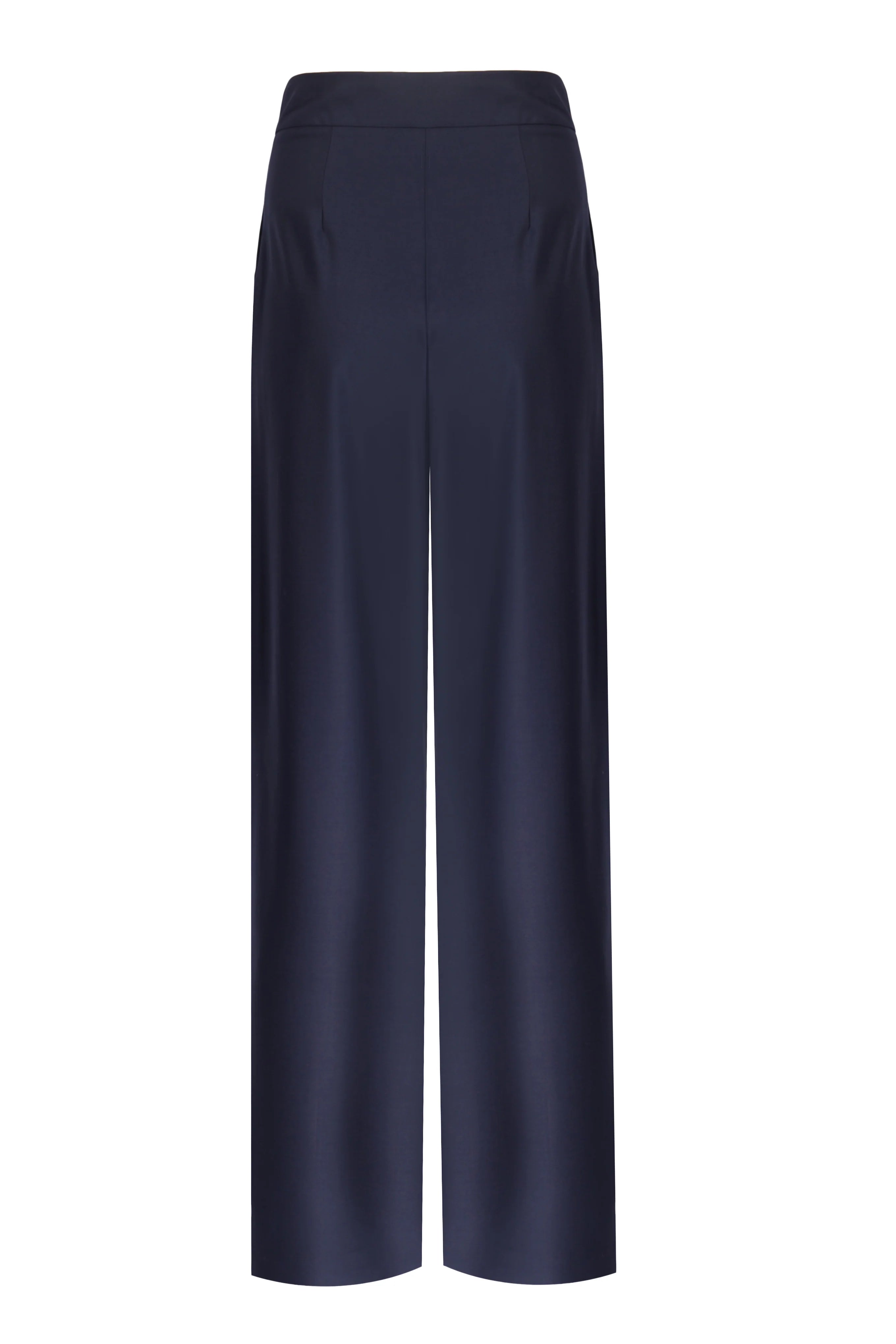 The Vesper trousers reinterpret classic tailoring with refined detail. Cut in a high-rise waist and straight-leg silhouette, they feature subtle front pleats that add movement while enhancing the long, clean line of the design. Finished with practical side pockets, they balance elegance and versatility—perfect from daytime polish to evening sophistication.